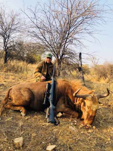 More than 25 different species of game offered: Blesbuck, Bushbuck, Damara Dik-Dik, Duiker, Eland, Oryx, Giraffe, Hartebeest, Impala, Klipspringer, Kudu, Lechwe, Nyala, Roan, Sable, Jackal, Springbok, Steenbok, Tessebee, Waterbuck, Warthog, Blue Wildebeest, Black Wildebeest, Burchell Zebra and Hartmann Zebra. Dangerous Game: Elephant & Buffalo will be hunted in the Caprivi concession areas while Leopard and Rhino on private Namibian land.